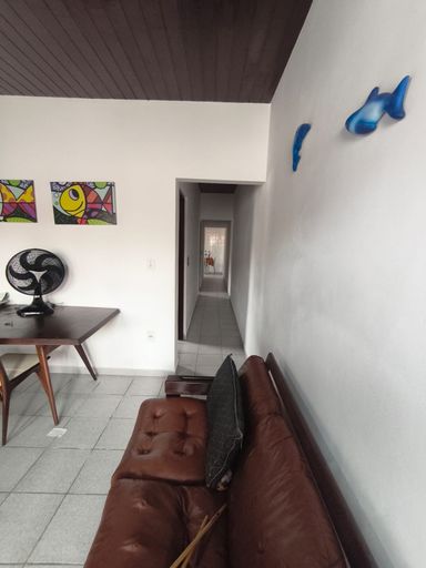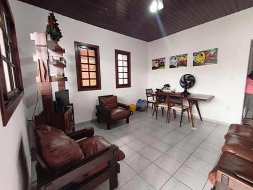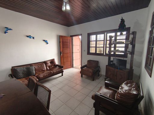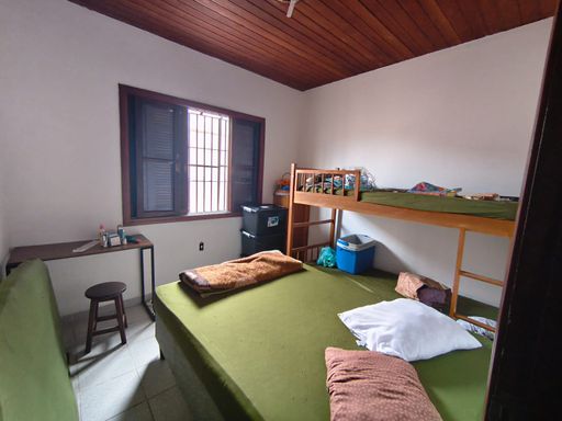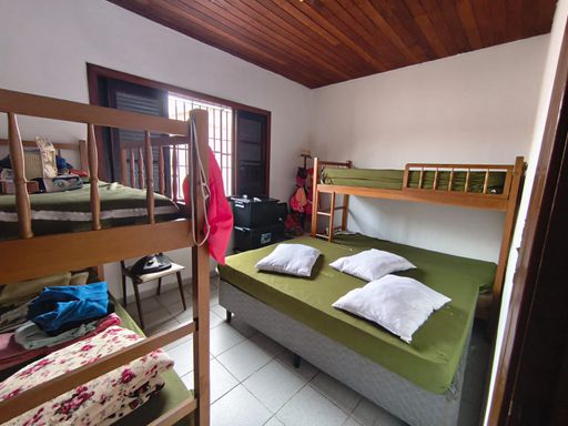 A casa possui 2 quartos amplos, capazes de acomodar confortavelmente até 10 pessoas. A sala de estar oferece espaço suficiente para momentos de convivência, enquanto a cozinha grande e equipada proporciona toda a funcionalidade para preparar refeições em grupo. O banheiro único é bem ventilado e conta com armários para maior organização. O imóvel também oferece um quintal espaçoso e 2 vagas de garagem, garantindo praticidade tanto para hóspedes quanto para visitantes.